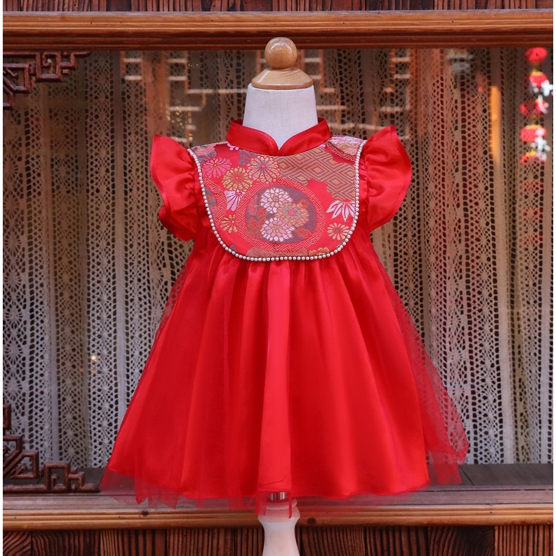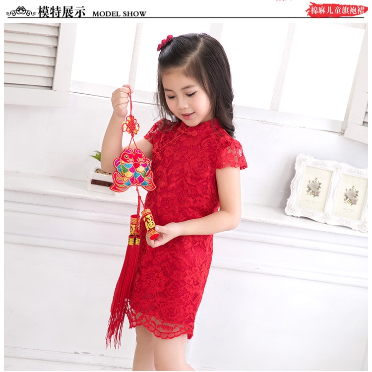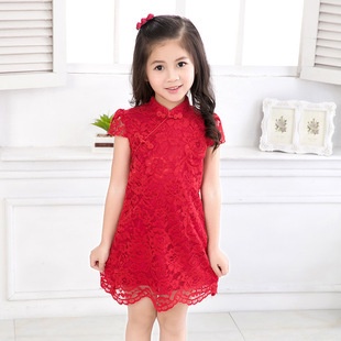 Children's cheongsam spring and summer girls' new lace Chinese style ethnic children clothing