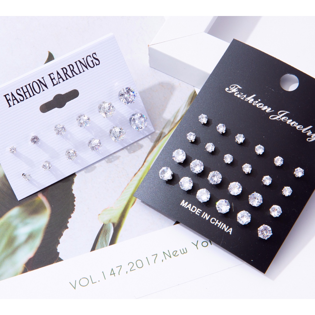 Crystal Zircon Six Claws Diamond 12 Pairs Size Earrings
