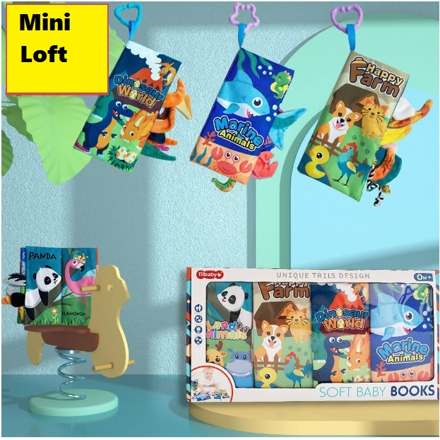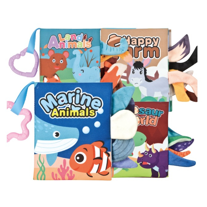 Baby Animal Tail Cloth Book Baby+Teether Cognitive Toy Set with Noise Paper Tear Not Bad Water Washable Palm Book