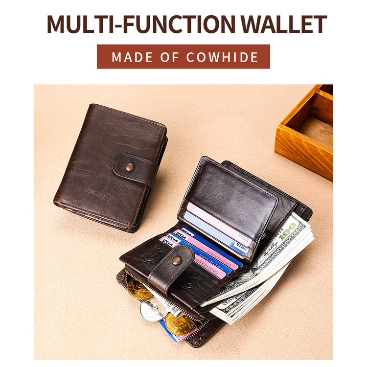 Cross-border new RFID crazy horse leather men's wallet leather casual zipper buckle coin wallet factory direct sales