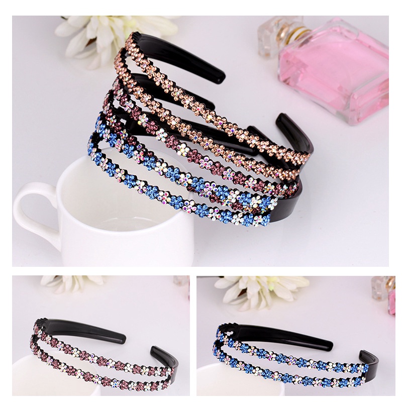 Korean version of rhinestone wide-brimmed headband hair accessories double row plum blossom rhinestone