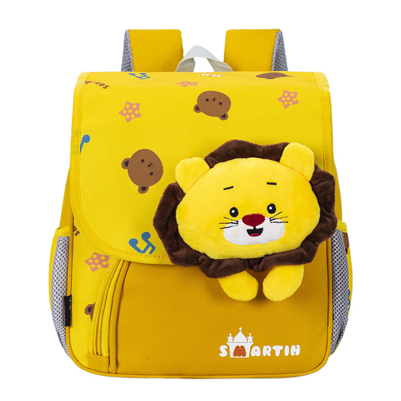 2023 New Little Lion Children's School Bag Cartoon Cute Kindergarten Boys and Girls Lightweight Ridge Double Protection