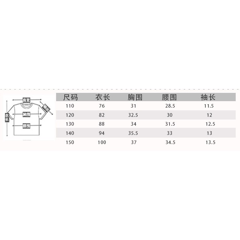 Size 120 (Chest 31cm, Length 76cm, Waist 28.5cm )
